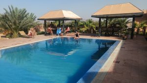 En marcha de nuevo cruzando zonas de arena y pedregales campo a través. Llegamos al Marabout de Sidi Najir, otro lugar mágico de la zona, y poco después se nos aparece una pista que nos lleva hasta Mahmid. Ha sido una jornada dura e intensa pero la «Baraka» nos ha sonreído y hemos salido victoriosos. Nos damos un merecido baño en la piscina del hotel Bab rimal, en Mahmid refrescarnos y descansar de una dura y calurosa etapa. Cena con un poco de conversación y a dormir!