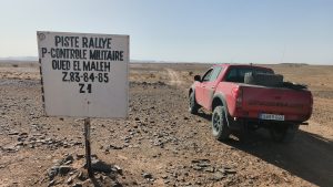 Desayuno en el hotel de Tissint, en la calle principal del pueblo volvemos a comprar pan y agua. Entramos en pista en rumbo sureste hasta llegar a un puesto militar, un rato después nos facilitan el paso y por pistas del Dakar nos vamos acercando al lago Iriki.