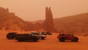Nos reunimos en el puerto de Valencia un 6 de febrero. Somos un total de 17 coches repartidos en dos grupos. El primer grupo dirigido por Juan Carlos de Rumbozero se va a explorar el sureste de Argelia, Djanet, el Taddrart y el erg Adhmer. El otro grupo formado por 9 coches de Sirocco 4×4 nos dirigimos a realizar la III Travesía del Gran erg Occidental.