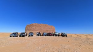 Enlace de carretera desde El Meniá hasta la localidad de Timmimoun donde repostamos y a mediodía entramos en las dunas. Vamos a visitar una de las leyendas del Sahara: el legendario Ksar Draa. Este granero fortificado rodeado de dunas de arena muy blanda es un lugar muy poco visitado, generalmente prohibido su acceso por las autoridades y poca gente puede afirmar haber llegado hasta él. Nosotros somos unos de los pocos afortunados que nos han autorizado a visitarlo.