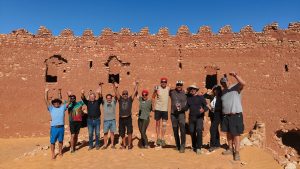 Esta vez las dunas tienen algo más de consistencia y encontramos unas rodadas que nos llevan con mucha facilidad hasta este bonito lugar. La foto de grupo es ineludible y celebramos el haber llegado con tanta rapidez. Entramos en su interior para disfrutar y aprender del uso de esta instalación por sus antiguos moradores.